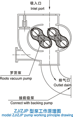 羅茨真空泵主要由一對(duì)同步高速旋轉(zhuǎn)的“8”字形轉(zhuǎn)子與兩個(gè)半圓形的泵腔組成。該泵不能單獨(dú)排氣,必須與前級(jí)泵(如滑閥泵、旋片泵、水環(huán)泵、油環(huán)泵等)串聯(lián)使用。在前級(jí)泵進(jìn)氣口前面串聯(lián)上羅茨真空泵組成機(jī)組可提高前級(jí)泵的真空度,在有效范圍內(nèi)可大大提高抽氣速率。羅茨真空泵的極限壓力由前級(jí)泵決定,表中數(shù)據(jù)為標(biāo)準(zhǔn)配置(配用雙級(jí)油封式機(jī)械真空泵)時(shí)的低極限壓力。羅茨泵廣泛使用于真空澆鑄、真空熔煉、真空脫氣、真空鍍膜行業(yè)及化工醫(yī)藥行業(yè)的真空蒸餾、真空干燥等。泵對(duì)小量灰塵不敏感。 本公司羅茨真空泵經(jīng)過(guò)10余年不斷改進(jìn),有以下優(yōu)點(diǎn): ●因轉(zhuǎn)子采用高精度專用數(shù)控機(jī)床加工,并作精細(xì)平衡校驗(yàn),具備良好的幾何對(duì)稱性,轉(zhuǎn)子嚙合間隙均勻。泵體、側(cè)蓋采用專用機(jī)床加工,精度高。因此本公司羅茨真空泵運(yùn)轉(zhuǎn)平穩(wěn)、噪聲低、振小、極限真空度高。 ●因泵的傳動(dòng)部件采用可靠的消隙結(jié)構(gòu),故泵可高壓差下長(zhǎng)期工作。 ●起動(dòng)快,能在短時(shí)間內(nèi)達(dá)到極限真空。 ●因泵腔內(nèi)無(wú)互相滑動(dòng)的零件,無(wú)需用油潤(rùn)滑,避免了油蒸汽對(duì)系統(tǒng)的污染。 ●安全可靠,ZJP系列本身配帶溢流閥起自動(dòng)保護(hù)作用。 ●結(jié)構(gòu)緊湊,占地面積小。左、右、下面三個(gè)排氣口可以任選一個(gè),方便用戶安裝。