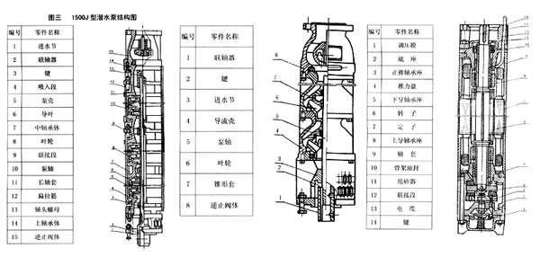 QJ系列不銹鋼304多級深井潛水泵結構圖