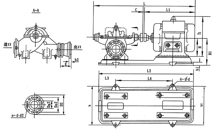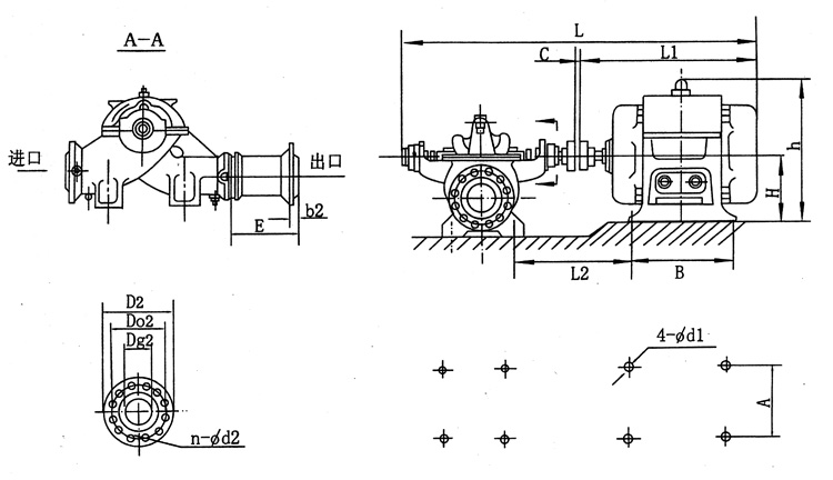 SH型雙吸清水離心泵安裝尺寸(不帶底座)