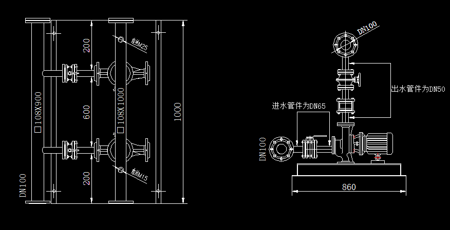 一用一備恒壓消防供水成套設(shè)備配臥式消防泵尺寸圖: