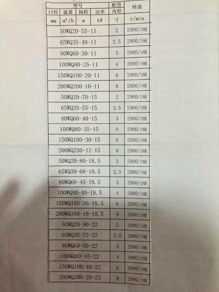 WQ潛水排污泵本公司新生產(chǎn)出11KW-22KW,二級(jí)2900r/min電機(jī)座,口徑DN50-200mm,揚(yáng)程高可達(dá)100米,填補(bǔ)了國內(nèi)空白,具有高效能,運(yùn)行穩(wěn)定,質(zhì)量可靠.
