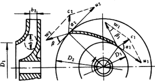 (1)離心泵的理論壓頭 假定條件:①葉輪內(nèi)葉片數(shù)目無限多,葉片的厚度無限薄,無任何環(huán)流現(xiàn)象; ②液體為粘度等于零的理想流體,液體在流動(dòng)中沒有阻力。 在葉輪的進(jìn)、出口截面列機(jī)械能衡算式,從而導(dǎo)出