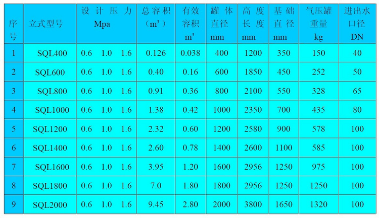 設(shè)計(jì)壓力:0.6Mpa ;1.0Mpa ;1.6Mpa