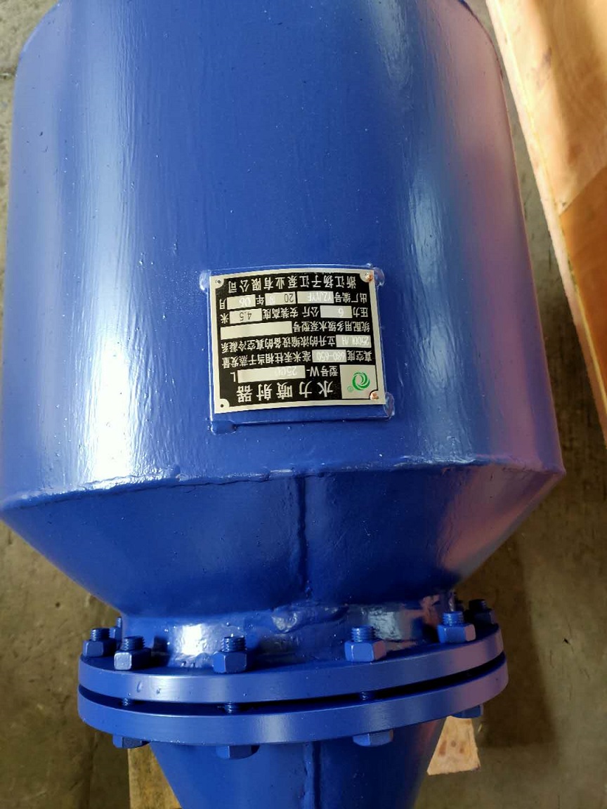 水力噴射器是一種具有抽真空、冷凝、排水等功能的機械裝置。它是利用一定的水壓,通過對稱和固定側(cè)斜度的噴俎,使水流會聚在同一個焦點上,由于噴射水流的流度速度高,于是在水柱周圍形成一定的負壓,使器室內(nèi)產(chǎn)生真空,另外由于二次蒸氣與噴射水流的直接接觸,進行熱交換,絕大部分的蒸氣都被凝結(jié)成水,少量未被冷凝的蒸氣和氣體,由于與噴射水流的相互磨擦,混合與擠壓,都通過擴壓關(guān)被排出,這時器室內(nèi)形成更高的真空。