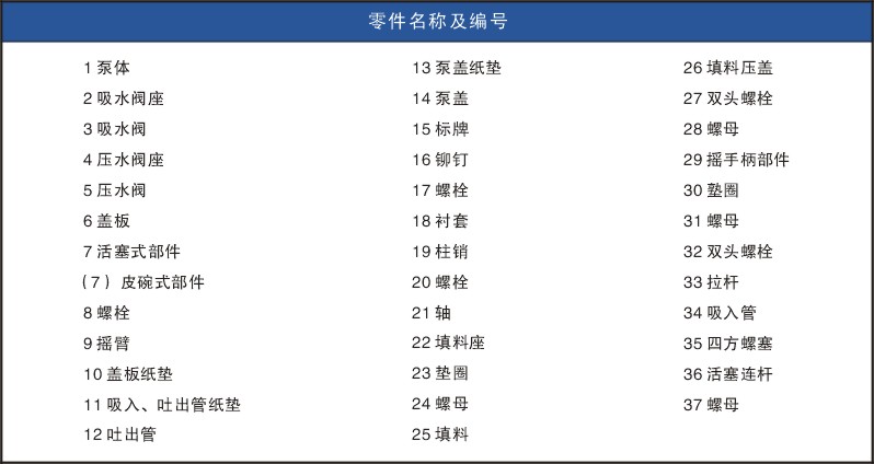 本型泵的結(jié)構(gòu)原理是,當(dāng)用手往復(fù)搖動(dòng)搖手柄(29)時(shí),通過軸(21)、搖臂(9)、