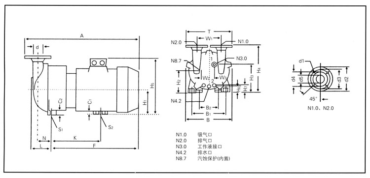SKA系列真空泵適于抽除氣體和水蒸汽,吸氣壓力達到33mbar絕壓(97%真空度),當真空泵在吸氣壓力低于80mbar的狀態(tài)下長期工作時,應(yīng)聯(lián)接氣蝕保護管以對泵進行保護,如配大氣噴射器,吸氣壓力可達10mbar,噴射器可直接安裝在真空泵上,作為壓縮機用時,其壓力大至0.26MPa(絕壓)。