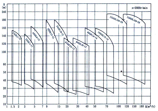 GDL系列立式多級(jí)管道離心泵曲線圖譜