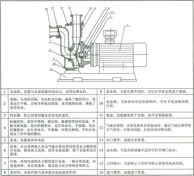 ZWL型直連式自吸無(wú)堵塞排污泵/污水泵結(jié)構(gòu)圖: