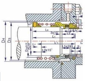 3、安裝中,要在動環(huán)和靜環(huán)(尤其是密封端血上),輔助密封圈、軸和端蓋上抹透平油或l0號機油,減小摩擦力,以免損壞靜環(huán)的密封端面及輔助密封圈。