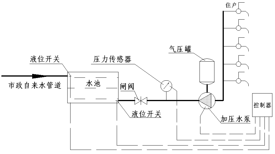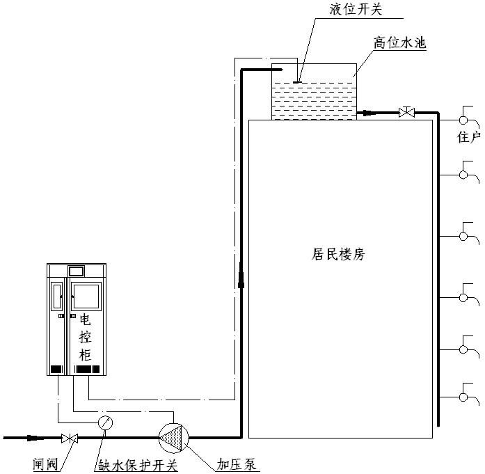 結(jié)合高位水池使用(需與浮球開關(guān)配合)