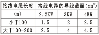 3.電壓波動允許在342-418伏之間。如電泵使用地距電源較遠,應按下表電纜,接頭盡可能減少。