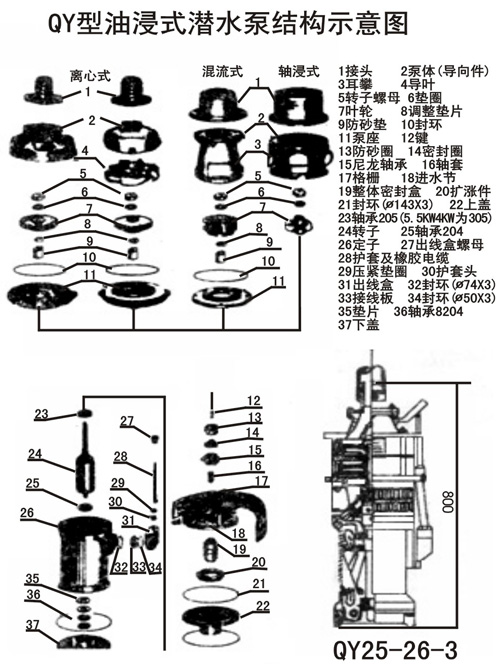 QY型油浸式潛水泵結構示意圖