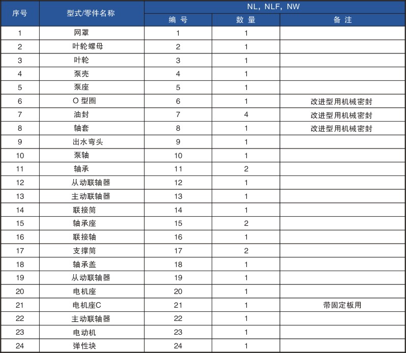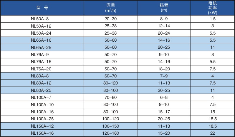 NL型80A-25污水泥漿泵等性能參數(shù)及零件目錄