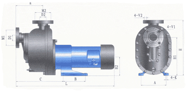 ZCQF型系列四氟耐腐蝕磁力自吸泵外形安裝尺寸圖