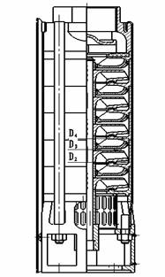 引言 目前,國內(nèi)外的深井離心泵可歸納為兩種。一種是S形流道深井離心泵,如圖1所示,其實質(zhì)是按斜流泵的設(shè)計方法設(shè)計的深井離心泵。另一種是徑向?qū)~深井離心泵,如圖2所示。 其實質(zhì)是按普通離心多級泵的設(shè)計方法設(shè)計的深井離心泵。從圖中可以清楚地看出來,這兩種深井離心泵的葉輪外徑D2都約等于導葉進口內(nèi)徑D3,而比導流殼大內(nèi)徑D4小得多。 S形流道深井離心泵是因為導流殼下端要裝螺栓,葉輪要裝進導流殼,只得比導流殼入口還要小。徑向?qū)~深井離心泵是因為按照原先的設(shè)計理論導流殼內(nèi)有正導葉,葉輪要裝進導流殼,只得比正導葉內(nèi)徑D3還要小。 在第一種深井離心泵基礎(chǔ)上,也有把螺栓連接改為拉桿連接的,但因為在原結(jié)構(gòu)基礎(chǔ)上建立起來的設(shè)計理論沒有變,葉輪外徑D2仍然約等于導葉進口內(nèi)徑D3,遠遠小于導流殼大內(nèi)徑D4。第二種深井離心泵雖然取消了正導葉,只保留反導葉,也因為設(shè)計理論沒有變,葉輪外徑D2 仍然小于導葉進口內(nèi)徑D3,更小于導流殼大內(nèi)徑D4。 由于井泵受機井井壁管內(nèi)徑限制,導流殼的直徑已經(jīng)很小了,葉輪直徑再受原設(shè)計方法限制,其單級揚程自然就很低了。而單級揚程低,一臺井泵就需要更多的葉輪和導流殼,就會增加井泵的長度和生產(chǎn)成本。 《井用潛水泵型式和基本參數(shù)》 和《長軸離心深井泵 型式與基本參數(shù)》中規(guī)定的井泵單級揚程都比較低,就是因為現(xiàn)有的深井離心泵設(shè)計方法有缺陷的結(jié)果。 GB/T2816-2002《井用潛水泵中取消了對單級揚程的規(guī)定,在國內(nèi)企業(yè)掀起了提高井泵單級揚程的研究高潮,我們在這個研究高潮中提出了創(chuàng)新的深井離心泵葉輪極大直徑設(shè)計法,可以把井泵的單級揚程提高許多,大多數(shù)都能提高50%左右,個別的可以提高一倍多,同時水泵效率也能達到國家標準規(guī)定的指標。 現(xiàn)把這種創(chuàng)新的深井離心泵設(shè)計方法介紹給大家,與大家共同探討。 1.水泵設(shè)計觀念的改變
