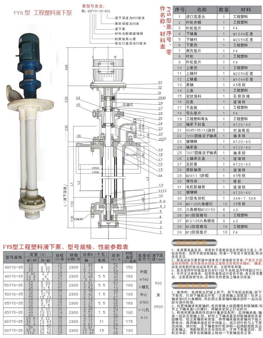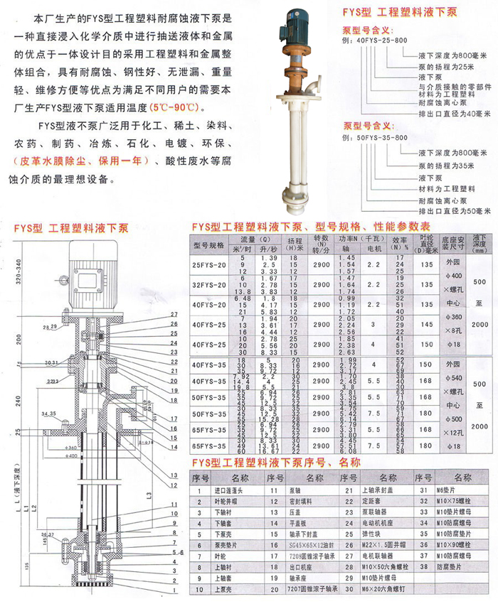 FYS工程塑料液下泵結(jié)構(gòu)圖