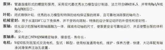 2、輸送介質為清水或物理化學性質類似清水的其它液體。(輸送介質帶有細小顆粒的應在訂貨時另行說明,以便裝配耐磨式機械密封)。