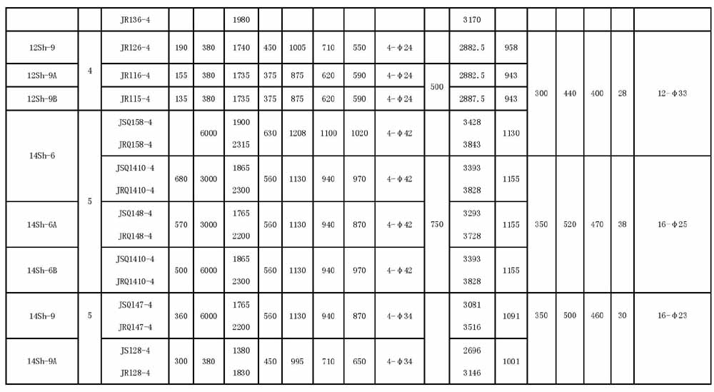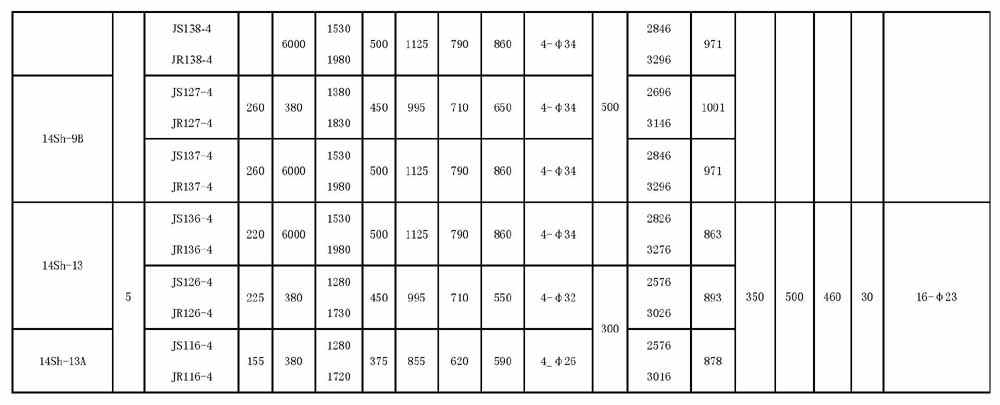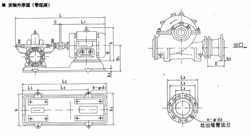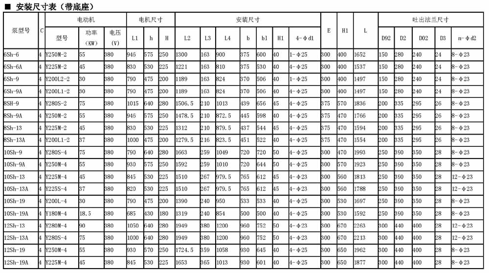 S、SH型單級(jí)雙吸中開(kāi)泵安裝尺寸: