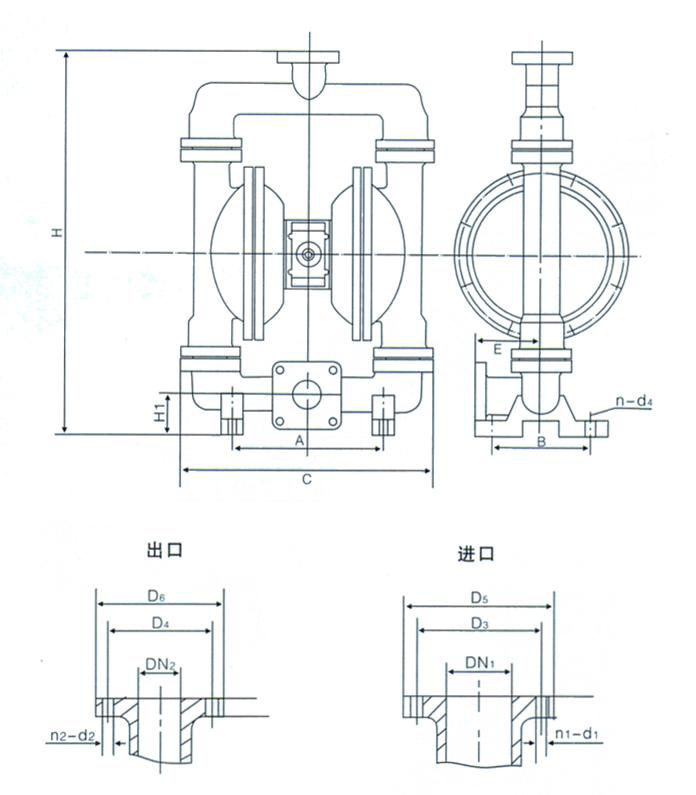 不銹鋼F46特氟隆膜片食品級氣動高粘度輸送隔膜泵結構圖分析