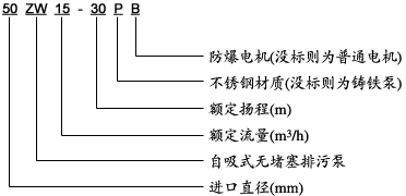 六、ZWPB型系列防爆排污不銹鋼自吸泵型號(hào)意義