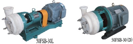 FSB和FSB-D型離心泵,過流部件全部采用氟塑料合金制造,結(jié)構(gòu)緊湊.操作簡單、價格低廉。兩種型號的泵殼、葉輪、機封等均可互換使用, 因此深受廣大用戶的歡迎。該泵采用目前為先進的外裝式四氟波紋管機械密封,擁有多層保護,延長了機封使用壽命,對于輸送含雜質(zhì)顆粒介質(zhì)時,可配用無冷卻水單端面硬對硬(碳化硅對碳化硅)機械密封,所以用戶選型時需考慮到介質(zhì)中的固體含量。