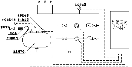 2、 當(dāng)自來水管網(wǎng)的壓力升高達(dá)到用戶使用壓力時(shí)候,變頻器經(jīng)過一段延時(shí)后便降低轉(zhuǎn)速直到停機(jī),只有當(dāng)壓力降到某一設(shè)定壓力值時(shí),變頻器才能重新開始工作。變頻泵組的工作只是滿足用戶的水壓力與管網(wǎng)壓力之差,大大節(jié)約了電能。
