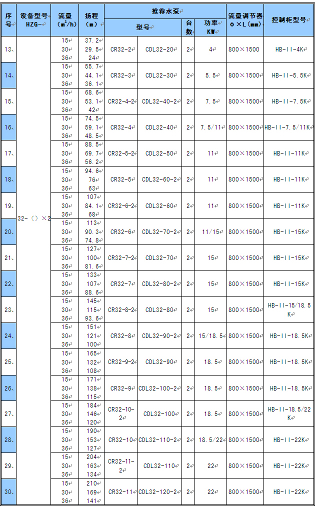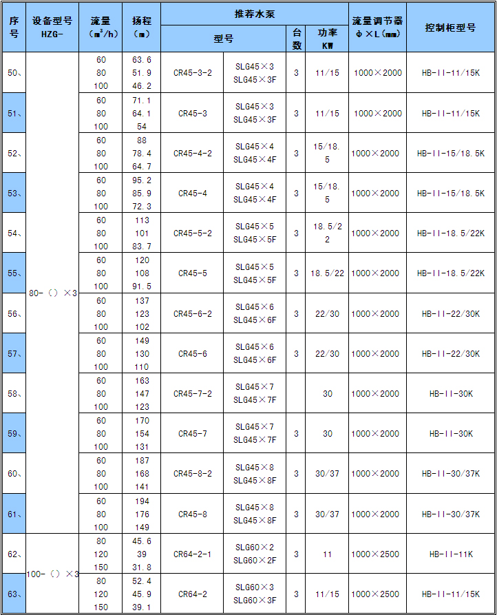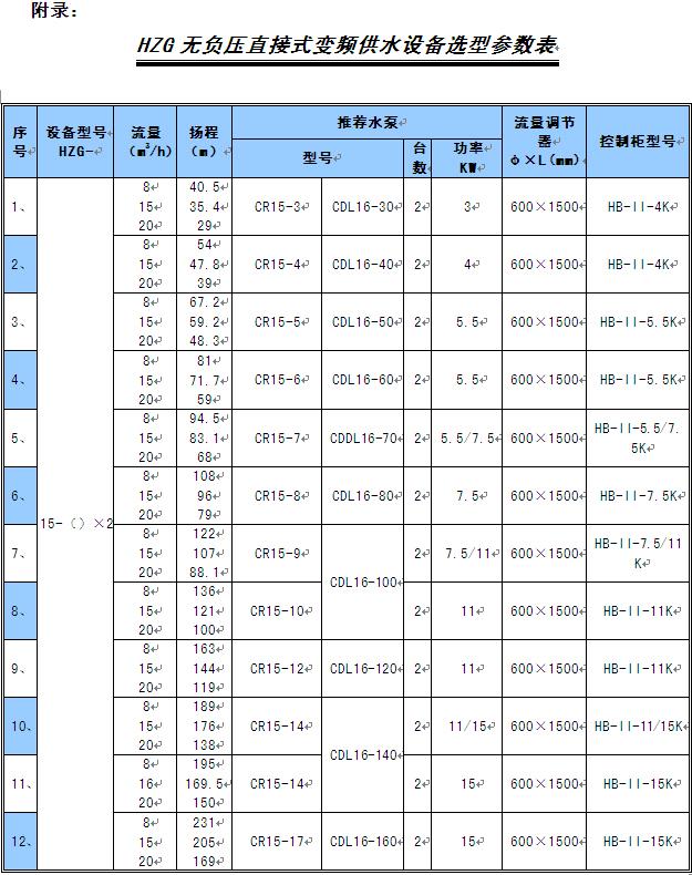 “HZG無負(fù)壓直接式變頻供水設(shè)備”主要指標(biāo)如下:
