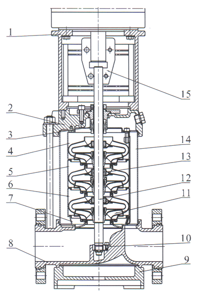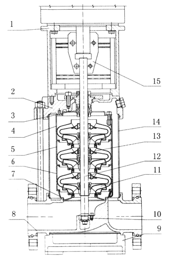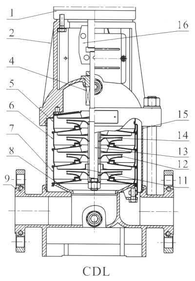 CDLF32,42,65,85立式不銹鋼衛(wèi)生多級(jí)泵產(chǎn)品結(jié)構(gòu)圖