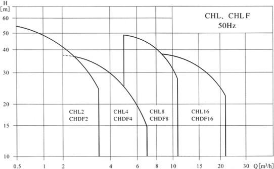 ■ CHL型不銹鋼臥式輕型多級(jí)離心泵性能曲線圖: