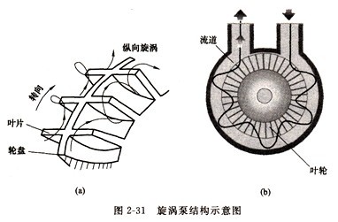 旋渦泵葉輪具有開式和閉式兩種,閉式葉輪葉片凹槽內(nèi)設(shè)有中間隔板,如圖2-31(a)所示:開式葉輪無中間隔板。
