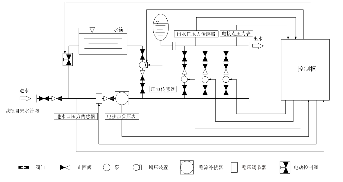 箱式管網(wǎng)疊壓變頻供水設(shè)備工作原理示意圖