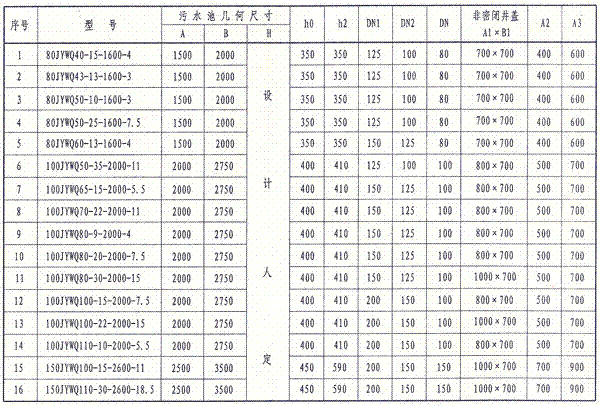 注:設計人員也可根據(jù)實際情況確定污水池(集水坑)的平面尺寸。污水池(集水坑)深度應小于等于6.0m.