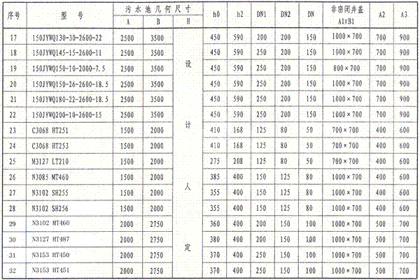 注:設計人員也可根據實際情況確定污水池(集水坑)的平面尺寸。污水池(集水坑)深度應小于等于6.0m
