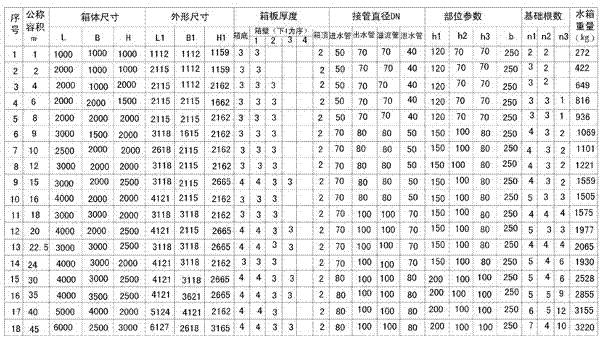 注:1.對高強(qiáng)度搪瓷給水箱厚度δ,凡用3、4者,均為5
