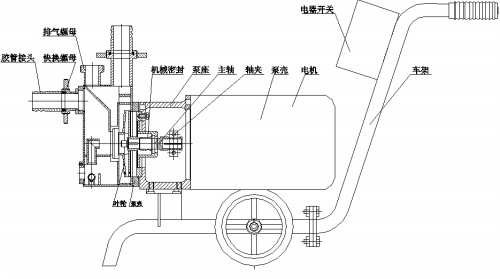 移動(dòng)式果汁飲料,酒類(lèi),醬油及醫(yī)藥,石油化工等近似水類(lèi)液體的輸送自吸泵結(jié)構(gòu)示意圖