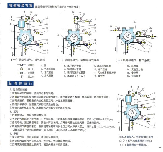 結(jié)構(gòu)設(shè)計(jì)完善:裝有柔性閥板的排氣口,保證了工作過(guò)程的平穩(wěn);配有自動(dòng)排水閥,避免超液位起動(dòng);當(dāng)加裝防汽蝕裝置時(shí),可以防止較高真空運(yùn)行時(shí)的汽蝕損害;加裝噴淋裝置時(shí),可以使高溫氣體在進(jìn)入泵前作充分的降溫收縮,增加泵的抽氣能力。