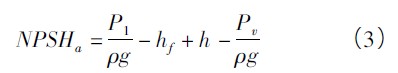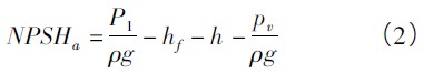 有效汽蝕余量(NPSHa),也即裝置汽蝕余量,是指泵所在裝置(或系統(tǒng)管路)所具有的汽蝕余量,其大小由吸入管路系統(tǒng)參數(shù)、安裝高度和管路中流量等決定的,與泵的結(jié)構(gòu)無關(guān)。該參數(shù)越大,泵越不容易汽蝕。式(1) 經(jīng)轉(zhuǎn)化可求出吸上或倒灌條件下的裝置汽蝕余量。