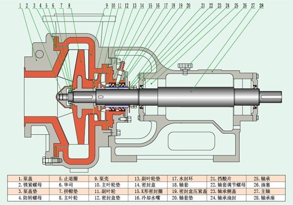 UHB-ZK型料漿泵,脫硫泵,砂漿泵,渣漿泵,壓濾泵密封結(jié)構(gòu)簡(jiǎn)圖及泵體結(jié)構(gòu)圖