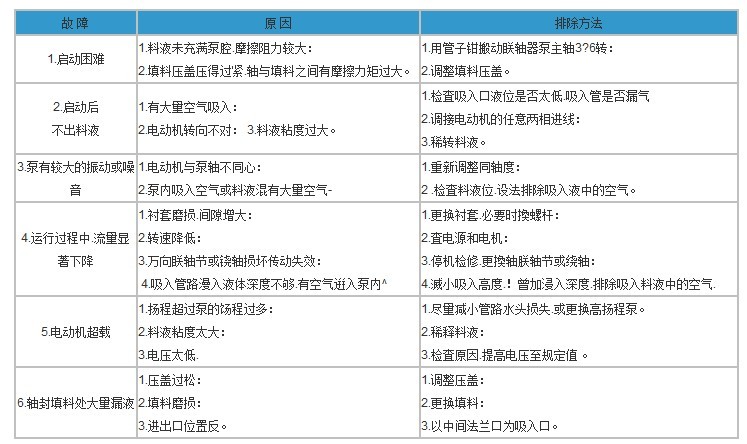 4.當(dāng)流量顯著減少.說(shuō)明橡膠村套已磨損.應(yīng)更換新村套后再運(yùn)轉(zhuǎn)。