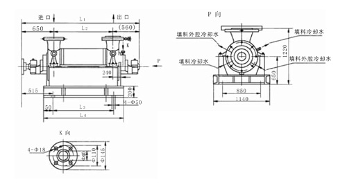 DG臥式多級離心泵安裝尺寸替(中低壓)本身底座