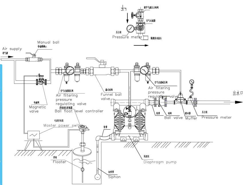8、氣動隔膜泵可以用于為油輪,駁船清倉吸取倉內(nèi)污水。