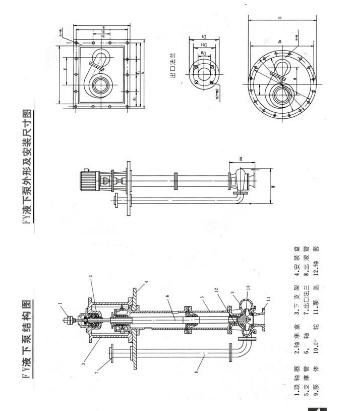FYB不銹鋼316化工耐腐蝕液下泵結(jié)構(gòu)圖安裝尺寸性能參數(shù)