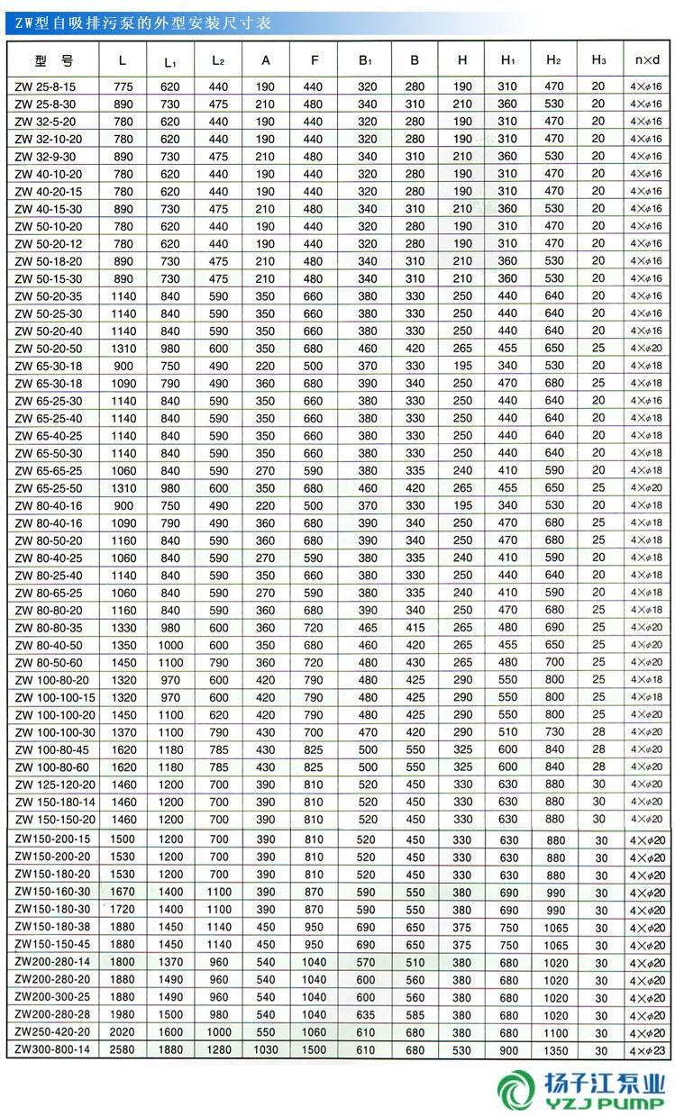 二、ZW型自吸式無堵塞排污泵(安裝尺寸)