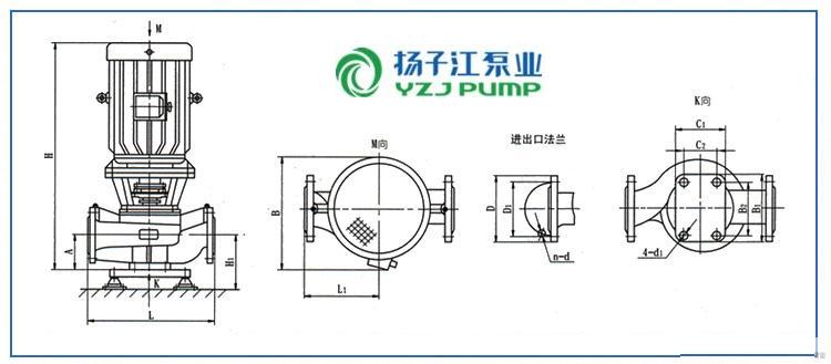 ISGB型便拆立式管道離心泵安裝尺寸圖: