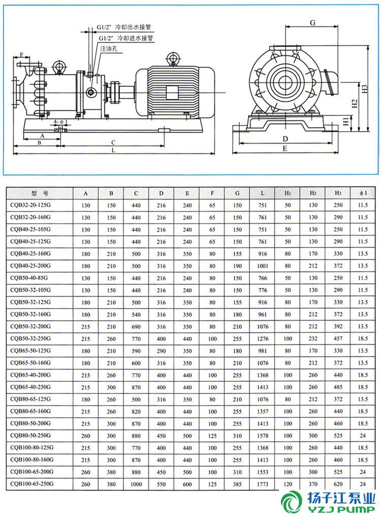 CQB-G系列高溫磁力驅(qū)動離心泵(安裝尺寸)