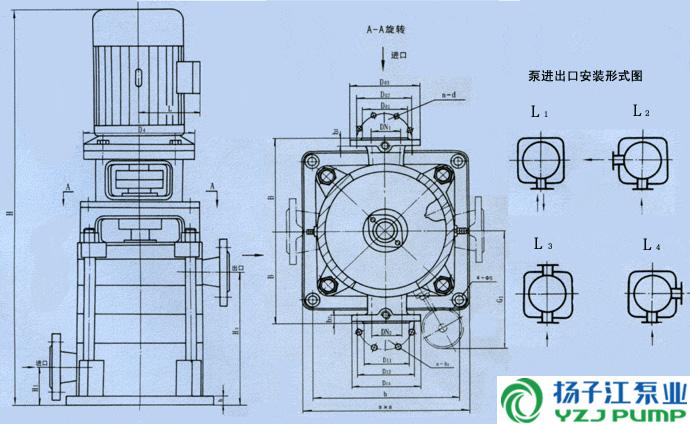 LG型高層建筑多級(jí)給水泵安裝尺寸圖: