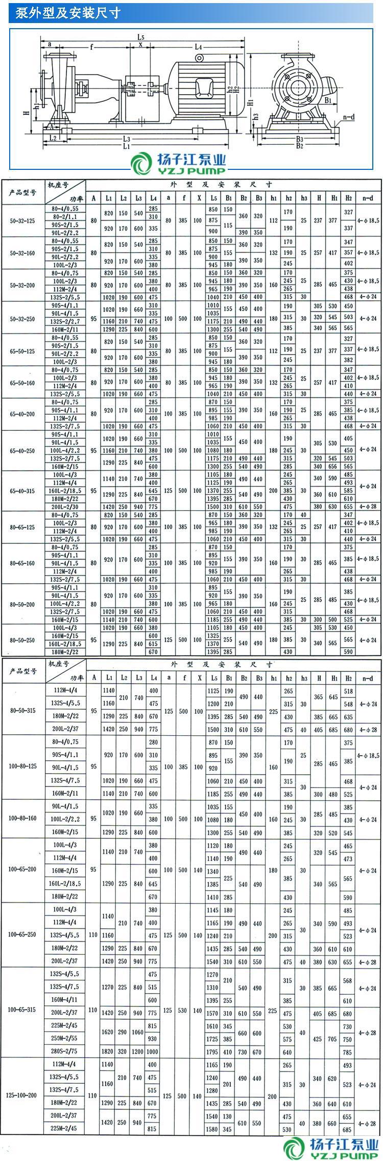 IS、IR型臥式單級(jí)單吸清水離心泵安裝尺寸