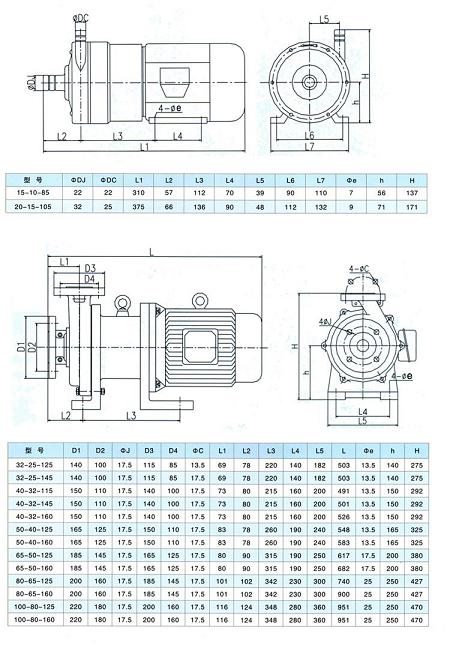 CQB-F型氟塑料磁力驅(qū)動泵(安裝尺寸):