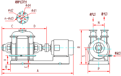 六、SK型水環(huán)式真空泵外型及連接圖: