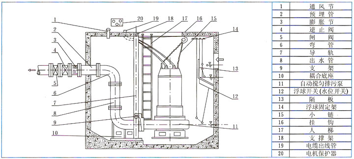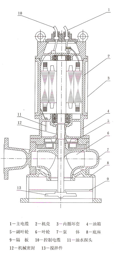 JYWQ型系列自動攪勻排污泵結(jié)構(gòu)示意圖及說明